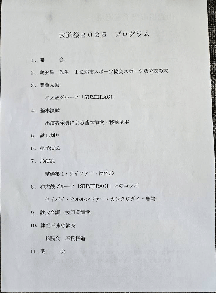 子供たちの元気な空手の演武や、昨年全国大会で優勝したメンバーによる抜刀道の演武、勇壮な和太鼓演奏や津軽三味線の演奏など、盛りだくさんのプログラムで、感動の武道祭となりました。